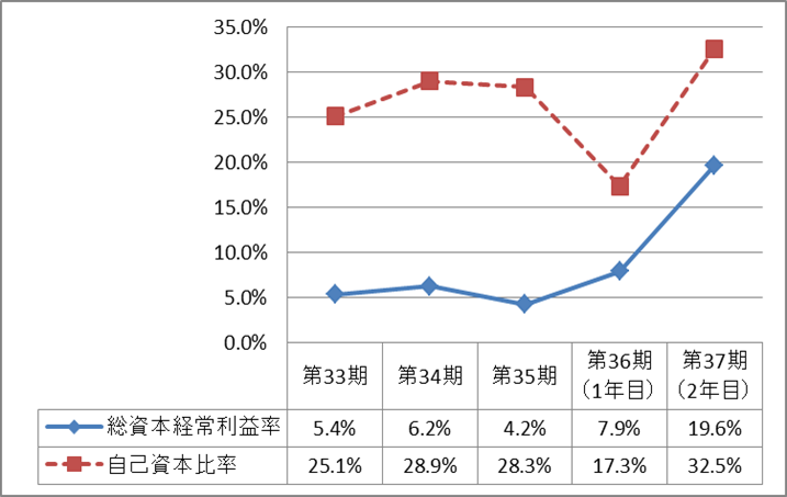 「総資本経常利益率」と「自己資本比率」をKPI(重要業績評価指標)とし、総資本経常利益率を10%以上、自己資本比率を30%以上にすることを目標とする財務改善プロジェクトを発足しました。